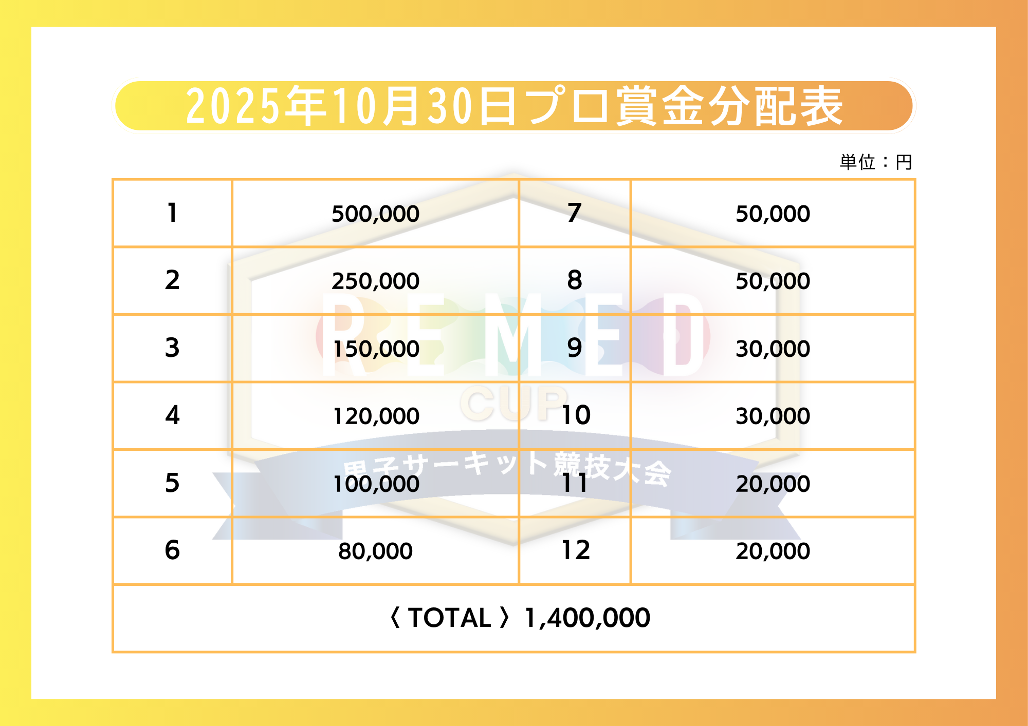 2025年10月30日賞金分配表