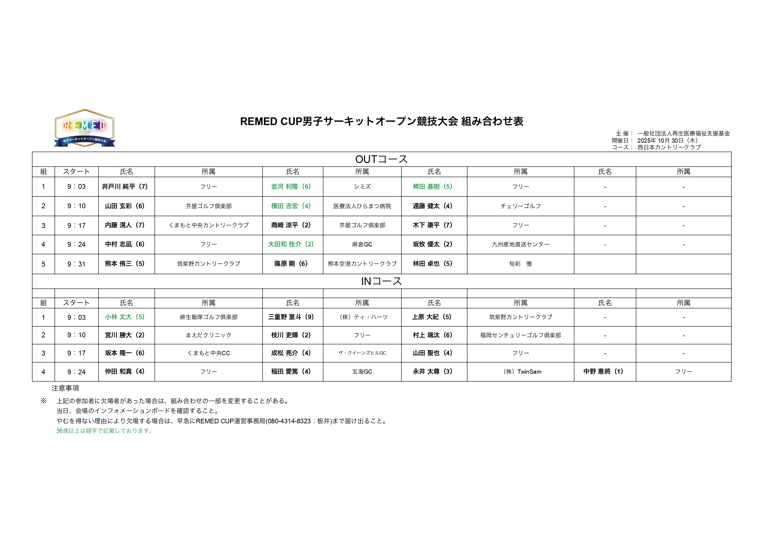スタート時間:午前9時03分~(INOUT全9組、セルフ、休憩あり)